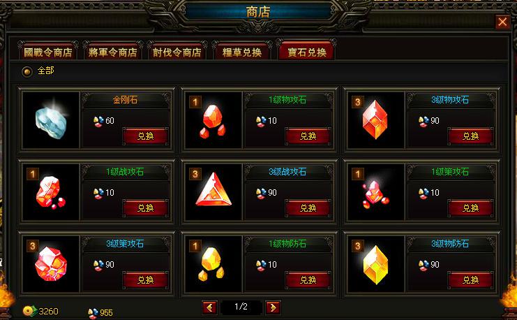 通过这种方式即可实现在同种类的宝石中转换操作,例如:将策攻宝石转换为战功宝石这样,将不需要的宝石转换为需要的宝石。