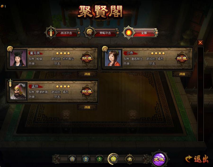 点击主界面的聚贤阁按钮即可进入招募将领的界面。